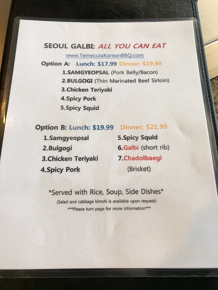 Seoul Galbi is a casual Korean BBQ spot in Temecula, CA known for its top-notch service and delicious dishes. The menu includes staple favorites like short ribs and the owner's mother's special potato recipe. Customers rave about the warm hospitality and generous portions. Highlights include the must-try short ribs, which are easy to cook and bursting with sweet and salty flavors. The owners and staff go above and beyond to make diners feel welcome and satisfied. Seoul Galbi is praised for being the best Korean BBQ joint in the area, with patrons coming back for more each time. Don't miss out on the budget-friendly prices, friendly atmosphere, and memorable dining experiences at Seoul Galbi.